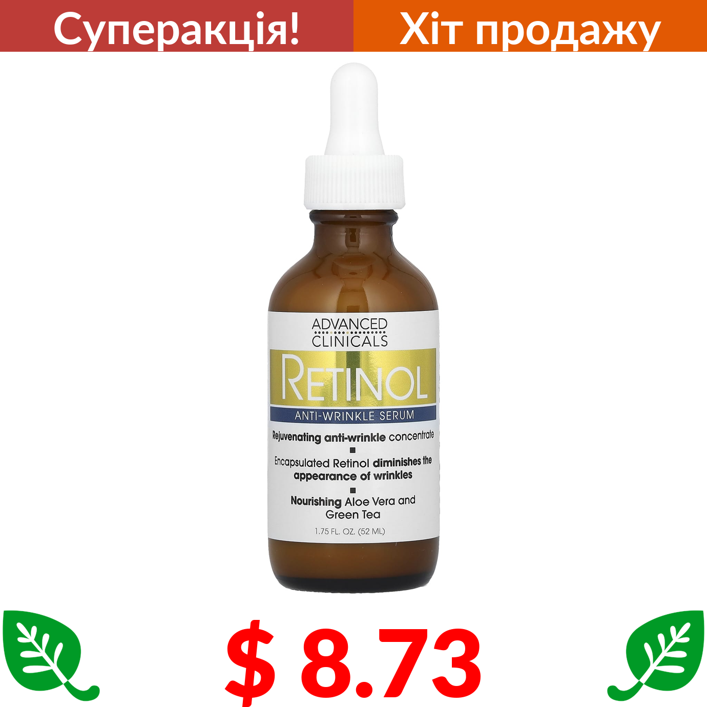 $ 8.73 Advanced Clinicals, сироватка з ретинолом, проти зморщок, 52 мл (1,75 рідк. унції)