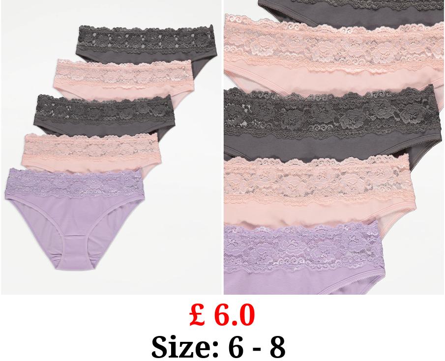£ 6.37 Lace Trim Mini Knickers 5 Pack