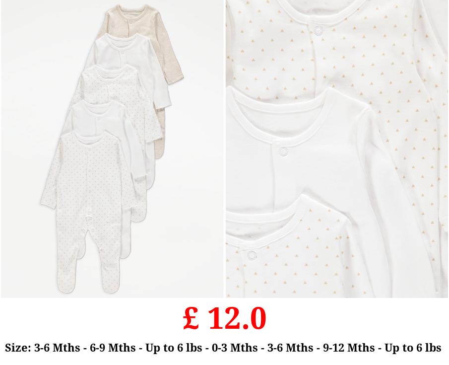 £ 12.0 Unisex Neutral Triangle Print Long Sleeve Sleepsuits 5 Pack