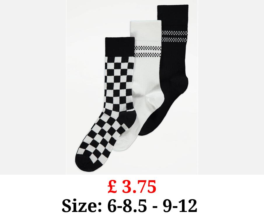 £ 3.75 Checked Sporty Ankle Socks 3 Pack
