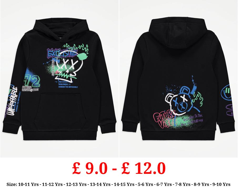 £ 9.0 - £ 12.0 Black Skull Graffiti Print Hoodie