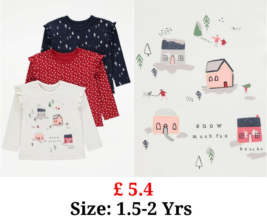 £ 5.4 Snow Much Fun Slogan Print Long Sleeve Top 3 Pack