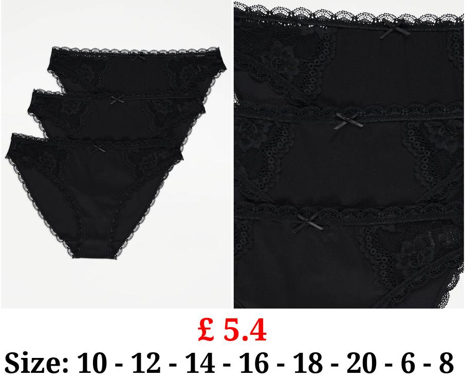 £ 5.4 Black Lace Trim High Leg Knickers 3 Pack