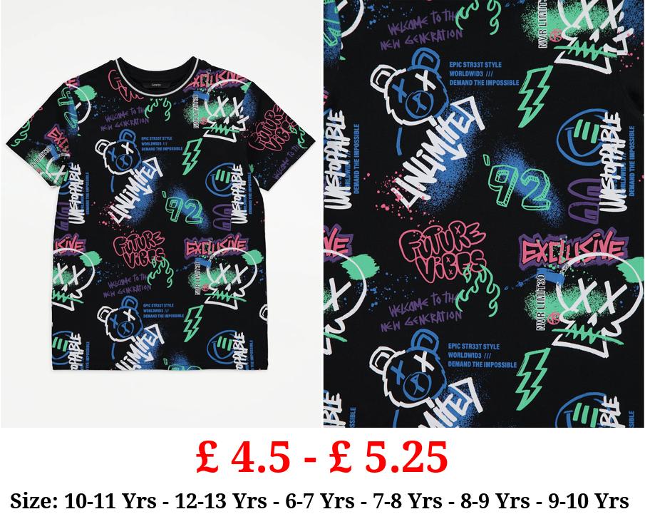 £ 4.5 - £ 5.25 Black Graffiti Paint Splatter Graphic T-Shirt