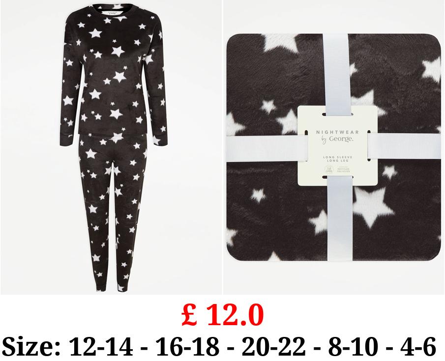£ 12.0 Black Star Fleece Long Sleeve Pyjamas Gift Set