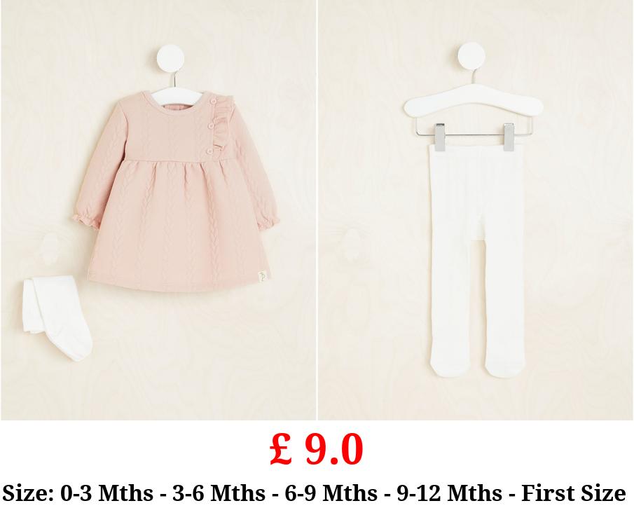 £ 9.0 Billie Faiers Pink Textured Jumper Dress and Tights Outfit