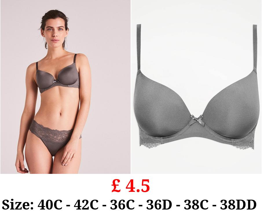 £ 4.5 Grey Lace Trim T-Shirt Bra