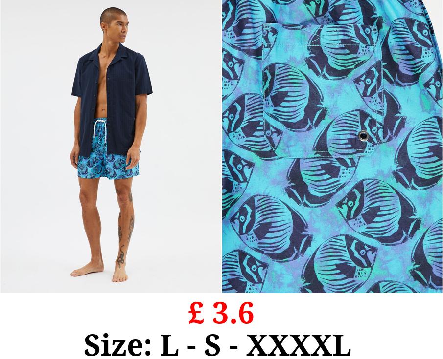 £ 3.6 Blue Fish Print Swim Shorts