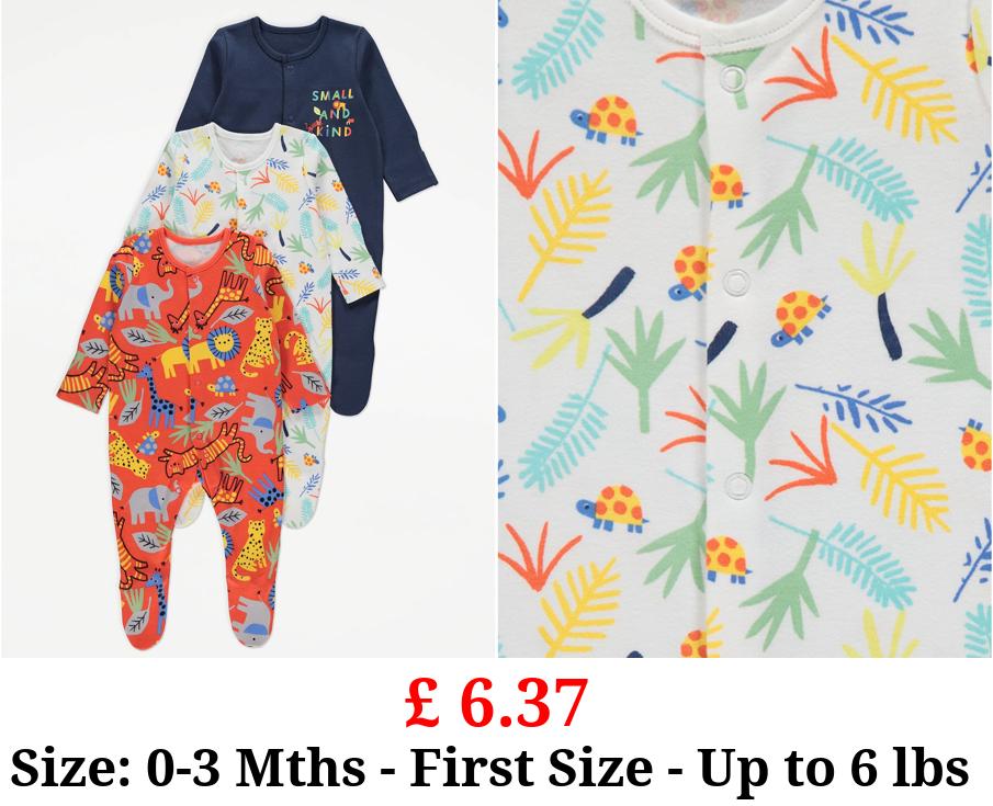 £ 6.37 Bright Safari Animal Sleepsuits 3 Pack