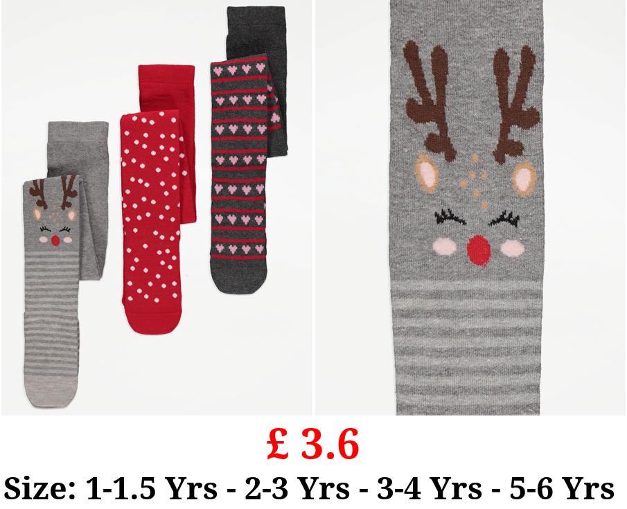 £ 3.6 Christmas Reindeer Cotton Rich Tights 3 Pack