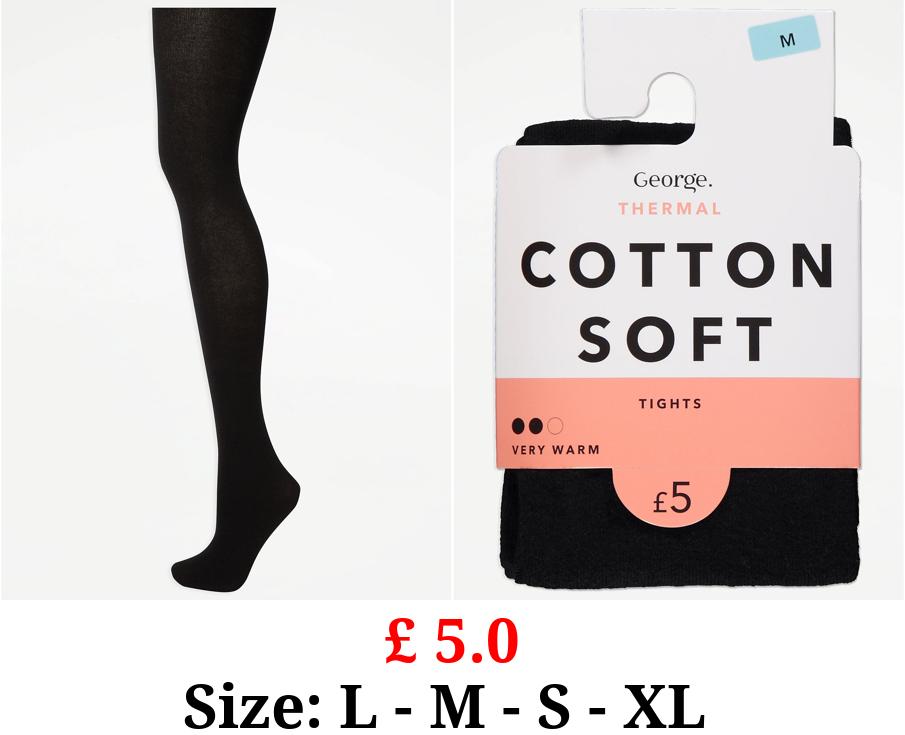 £ 5.0 Black Cotton Rich Soft Thermal Tights