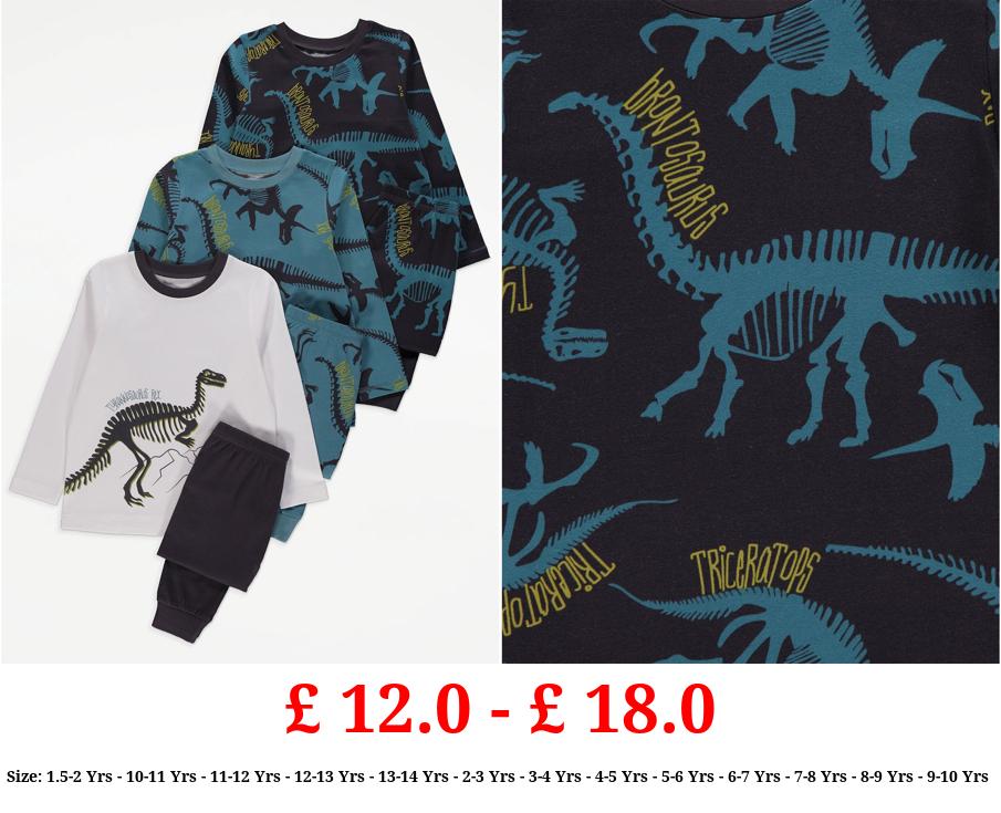 £ 12.0 - £ 18.0 Skeleton Dinosaur Long Sleeve Pyjamas 3 Pack