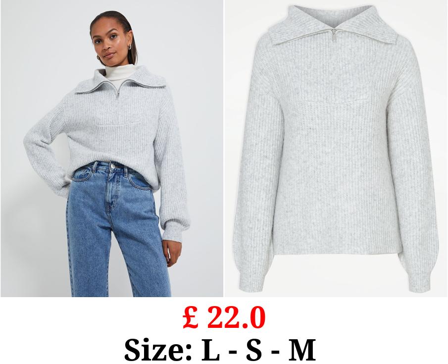 £ 22.0 Grey Knitted Quarter Zip Jumper