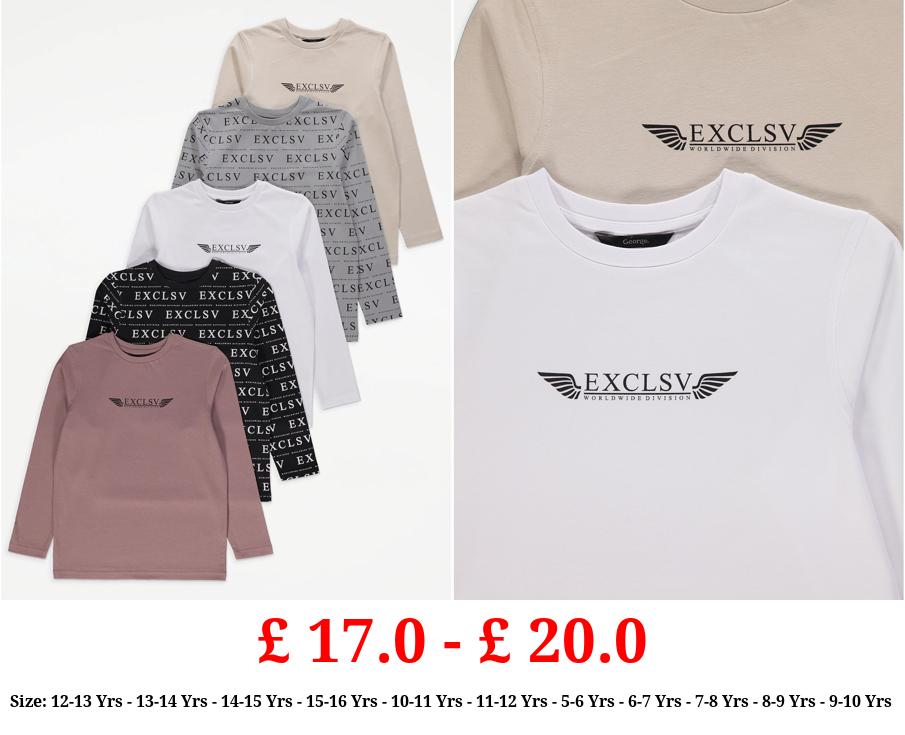 £ 17.0 - £ 20.0 Exclsv Worldwide Division Long Sleeve Tops 5 Pack