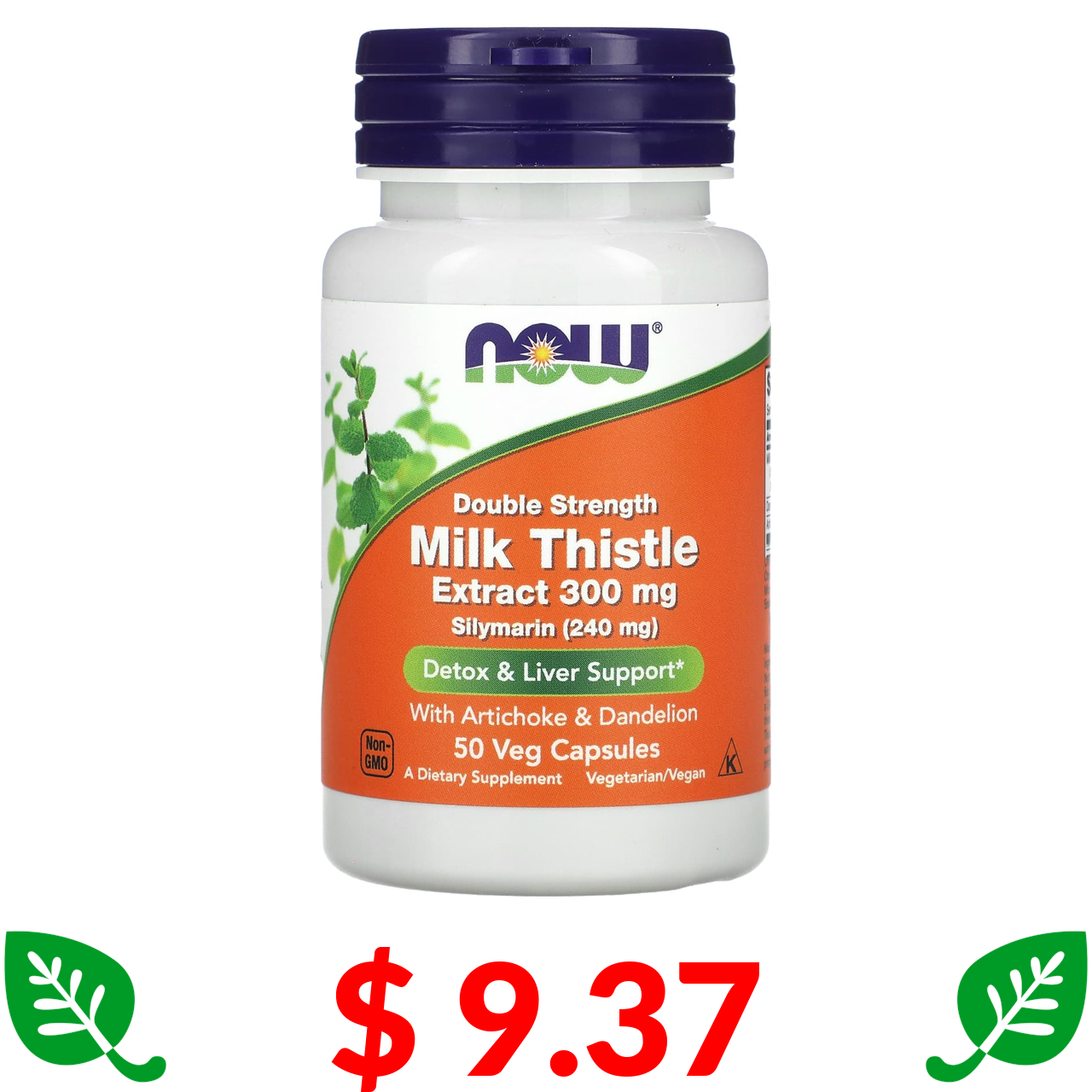 $ 9.37 Now Foods, розторопша, подвійна сила, 300 мг, 50 веганських капсул