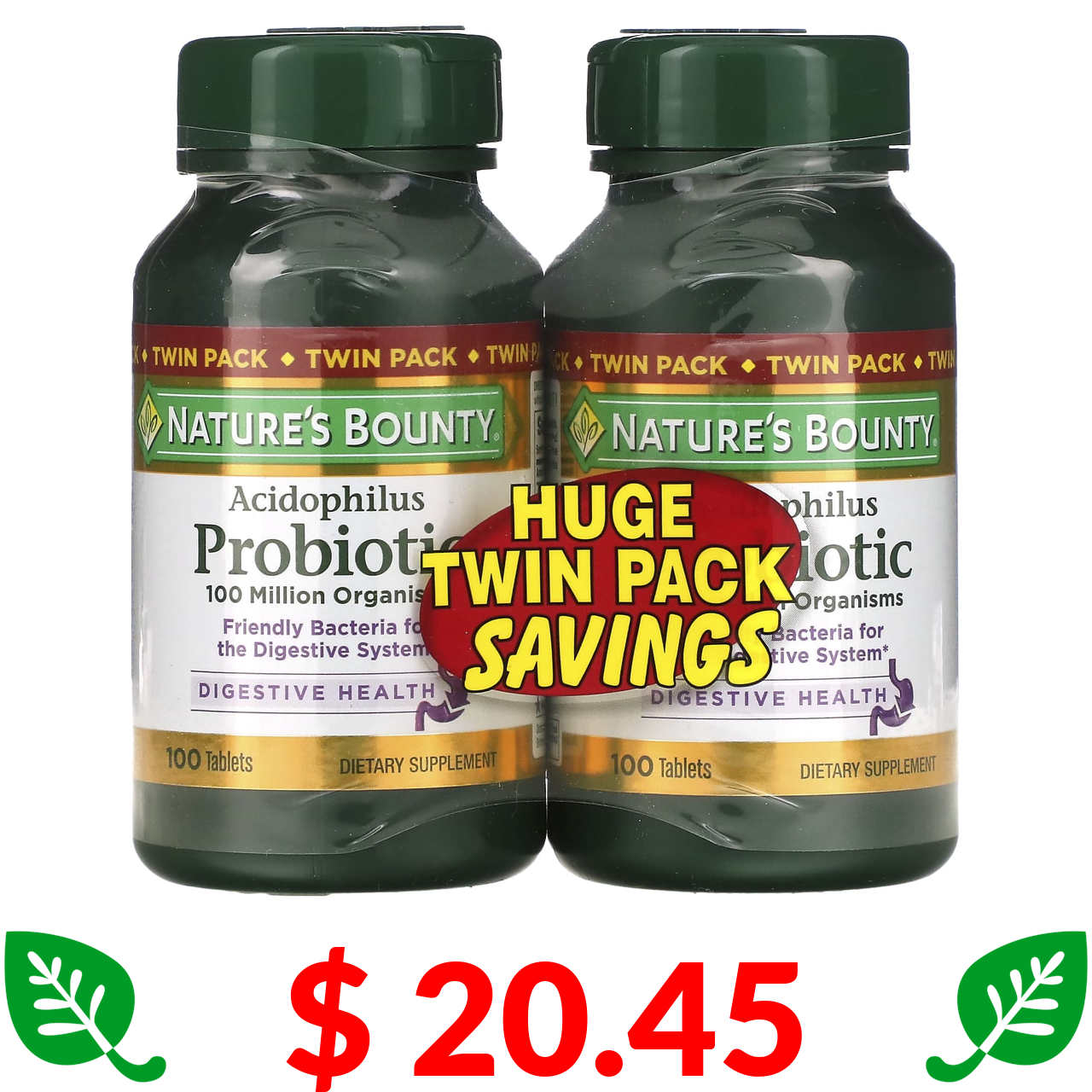 $ 20.45 Nature's Bounty, ацидофільні пробіотики , подвійна упаковка, по 100 таблеток в кожній