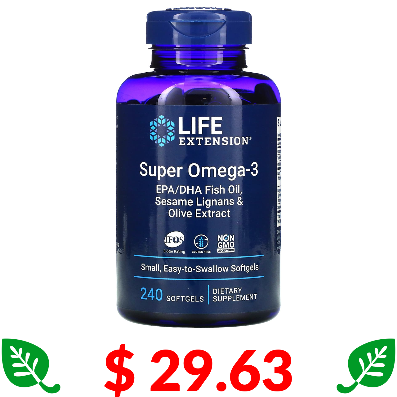 $ 29.63 Life Extension, супер омега-3, 240 капсул