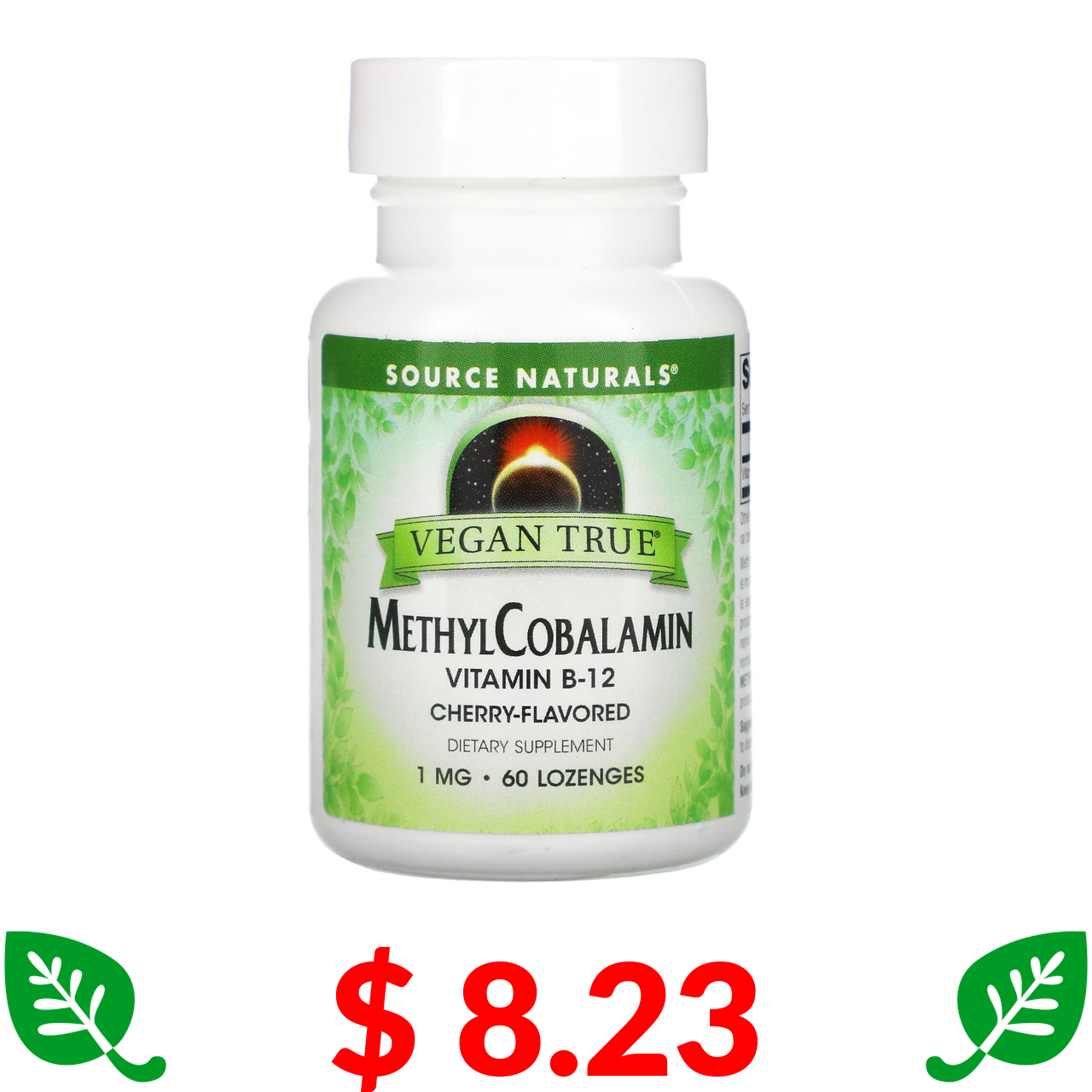 $ 8.23 Source Naturals, Vegan True, MethylCobalamin Vitamin B-12, Cherry , 1 mg, 60 Lozenges
