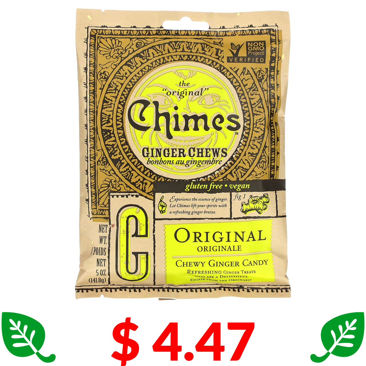 $ 4.47 Chimes, Імбирна жуйка, оригінальна, 5 унцій (141,8 г)