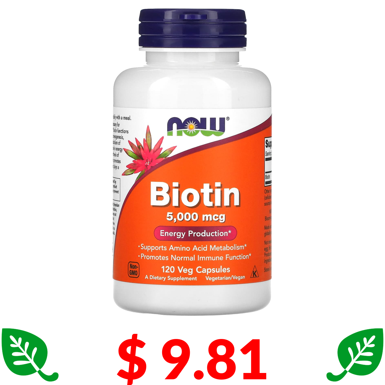 $ 9.81 Now Foods, біотин, 5000 мкг, 120 вегетаріанських капсул