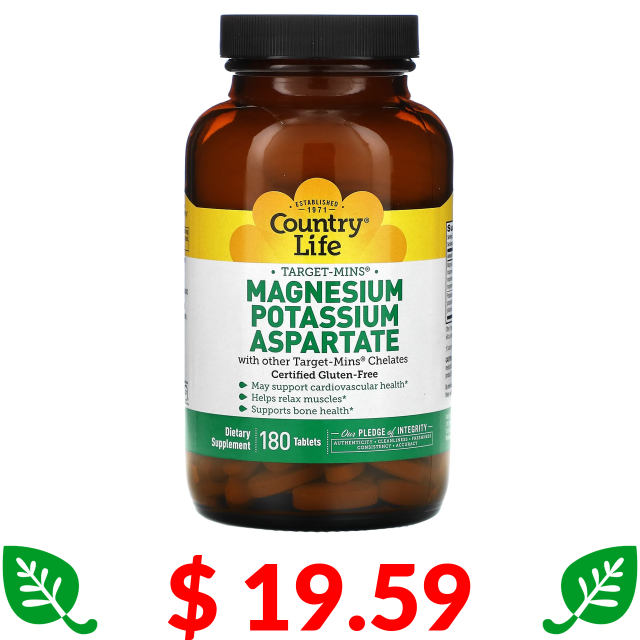 $ 19.59 Country Life, Target-Mins, аспартат магнію та калію, 180 таблеток