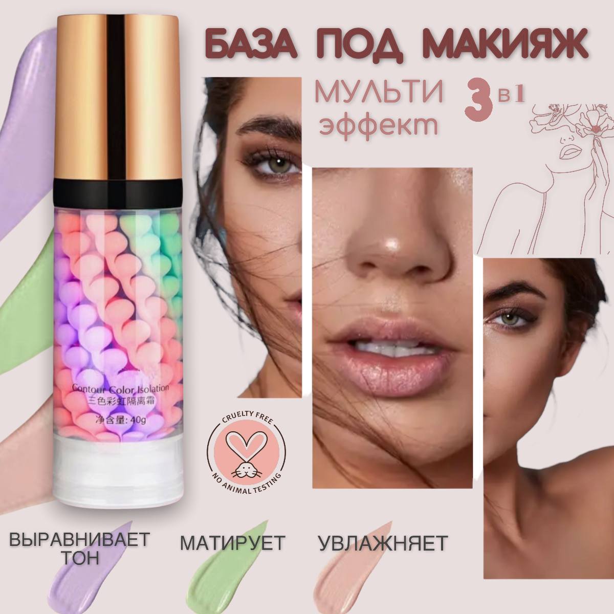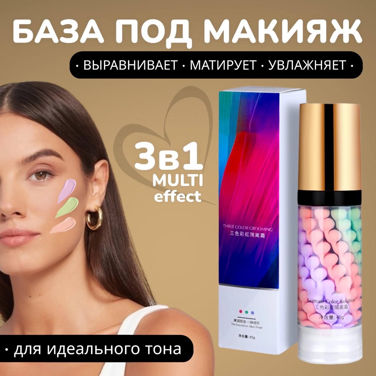 наносить трехцветную базу под макияж