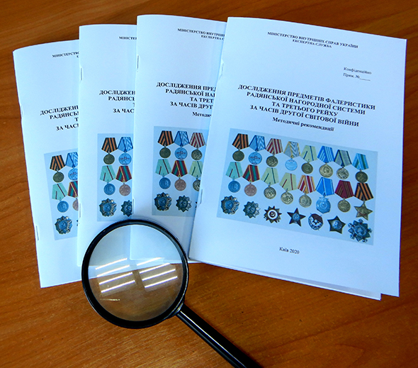 Як результат проведеної роботи, нещодавно, вийшли друком методичні рекомендації під авторством завідувача відділу досліджень у сфері інформаційних технологій Черкаського НДЕКЦ МВС Солодовнікова І.В. та завідувача сектору мистецтвознавчих та психологічних досліджень відділу фототехнічних, портретних, мистецтвознавчих, психологічних досліджень, досліджень звуко- та відеозапису лабораторії досліджень у сфері інформаційних технологій ДНДЕКЦ МВС Новікової К.В. - «Дослідження предметів фалеристики радянської нагородної системи та Третього рейху за часів Другої світової війни», схвалені науковою радою Експертної служби МВС України, протокол від 27.12.2019 №62. Це перша спроба узагальнити досвід фахівців з дослідження нагород часів Другої світової війни.