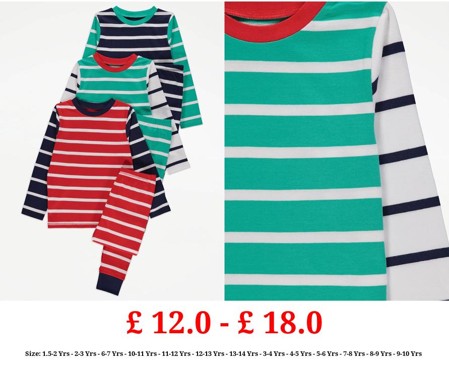 £ 12.0 - £ 18.0 Bright Striped Long Sleeve Pyjamas 3 Pack