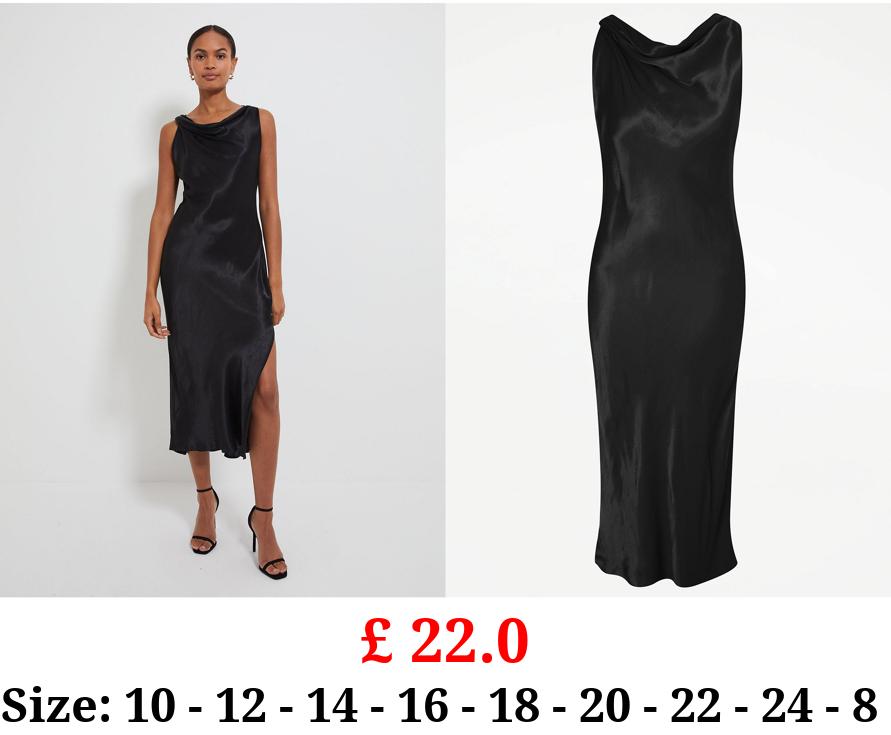 £ 22.0 Black Cowl Neck Bias Cut Satin Slip Midi Dress