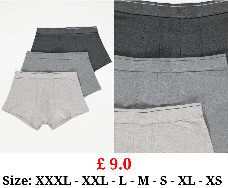 £ 9.0 Grey Plain Hipster Boxers 3 Pack