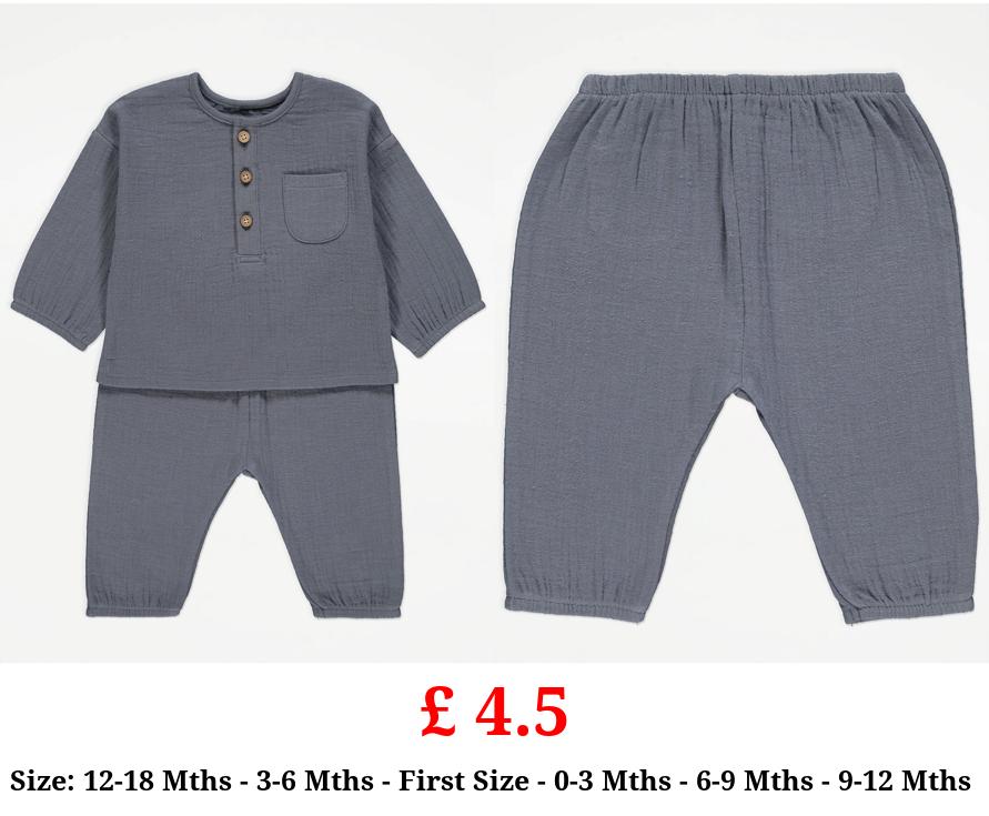 £ 4.5 Blue Cheesecloth Long Sleeve Top and Trousers Outfit