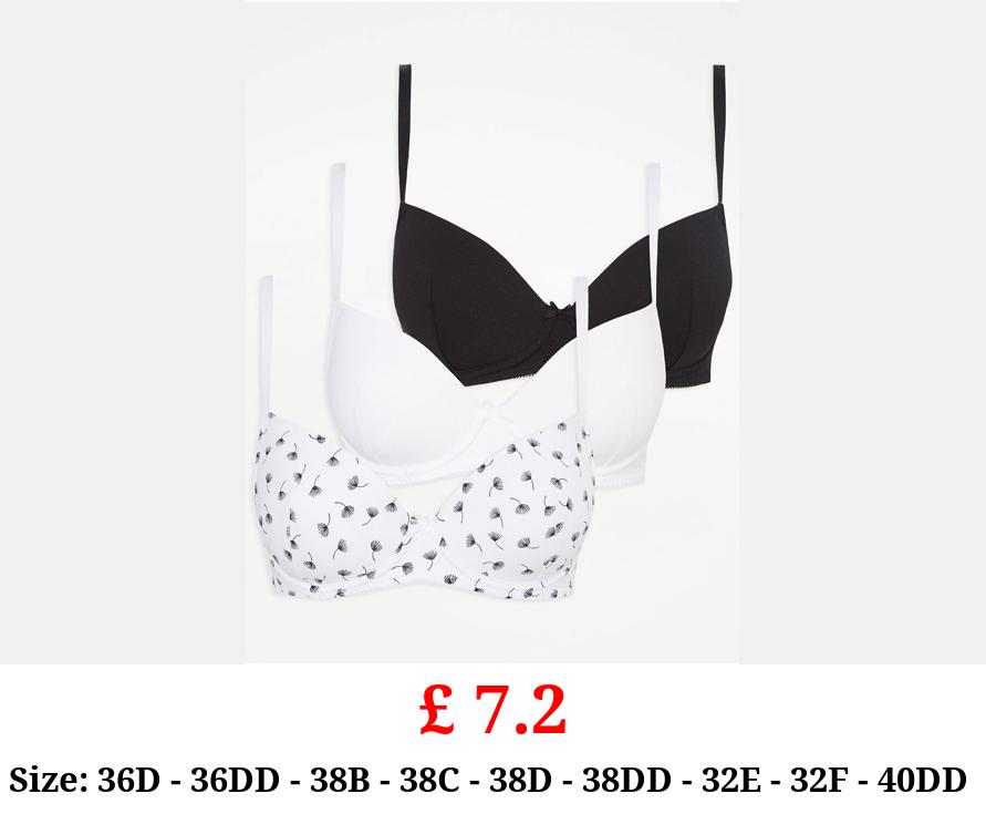 £ 7.2 Monochrome Printed T-Shirt Bras 3 Pack