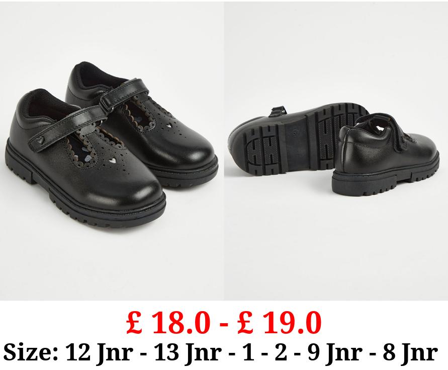 £ 18.0 - £ 19.0 Black Leather Cut Out T-Bar School Shoes