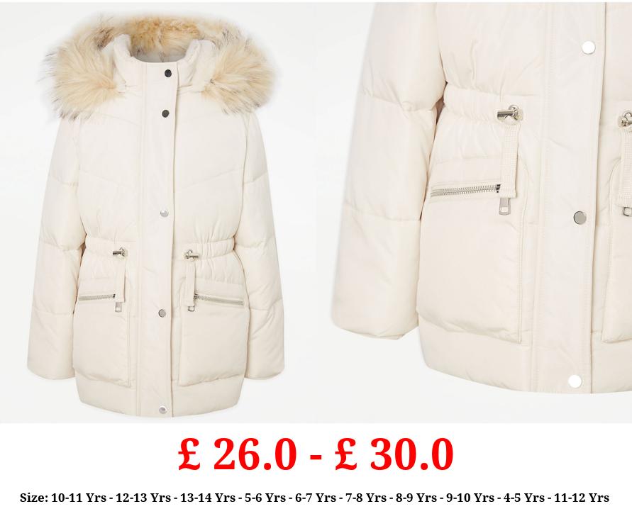 £ 26.0 - £ 30.0 Cream Faux Fur Trim Parka Coat