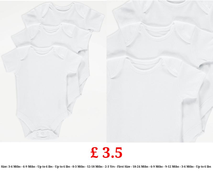 £ 3.5 White Short Sleeve Bodysuits 3 Pack