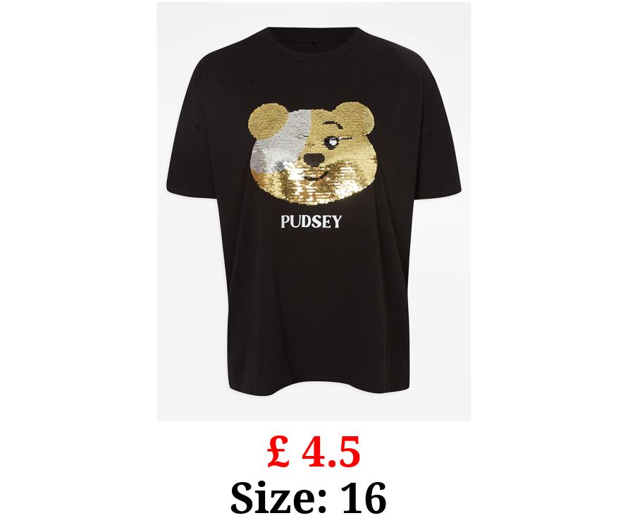 £ 4.5 Children In Need Pudsey Flip Sequin Matching Adults T-Shirt