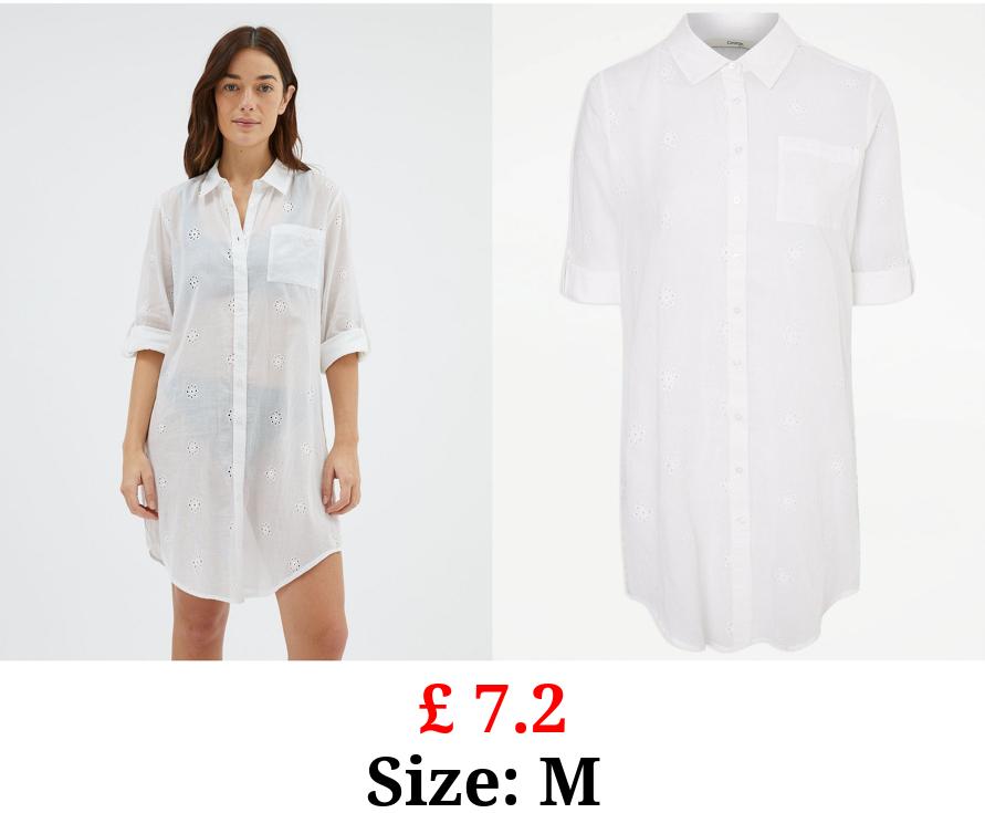 £ 7.2 White Embroidered Longline Beach Shirt