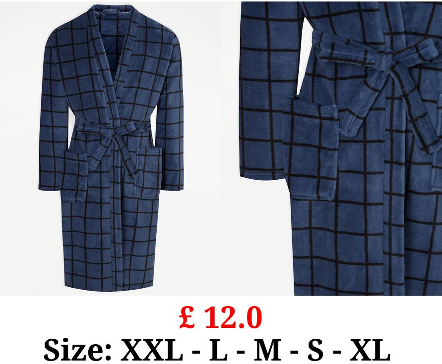 £ 12.0 Navy Checked Fleece Dressing Gown