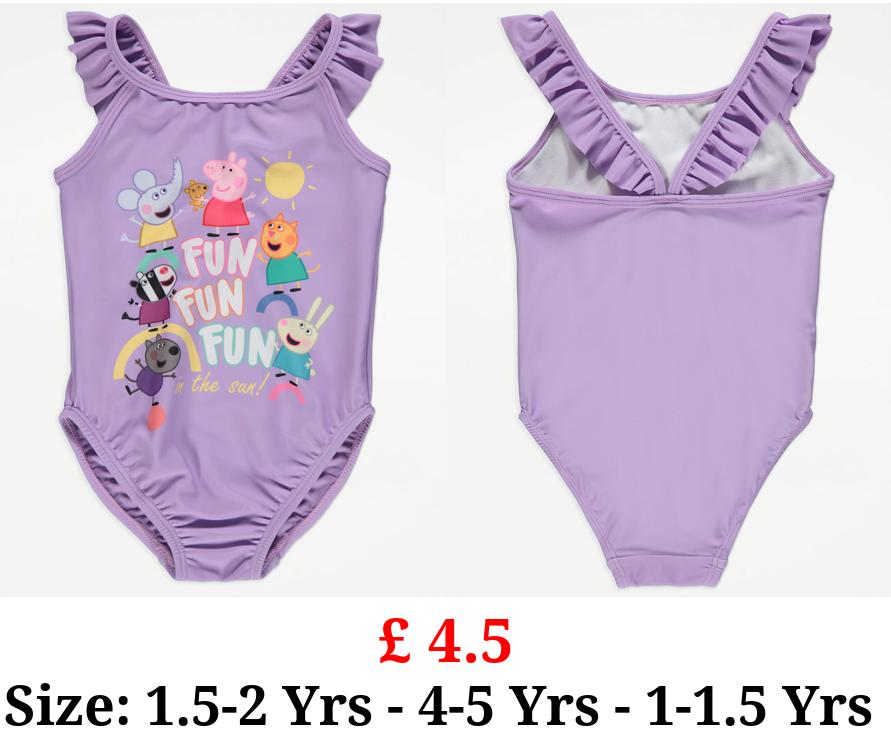 £ 4.5 Peppa Pig Purple Fun In The Sun Frill Swimsuit