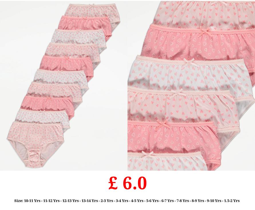 £ 6.0 Pink Heart Print Briefs 10 Pack