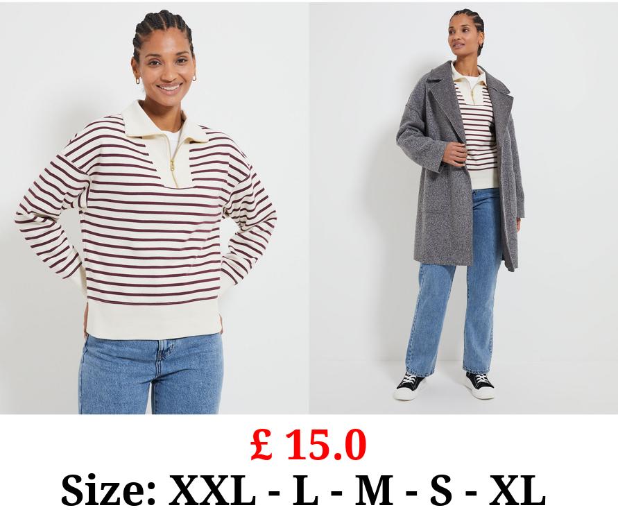 £ 15.0 Burgundy Striped Quarter Zip Sweatshirt