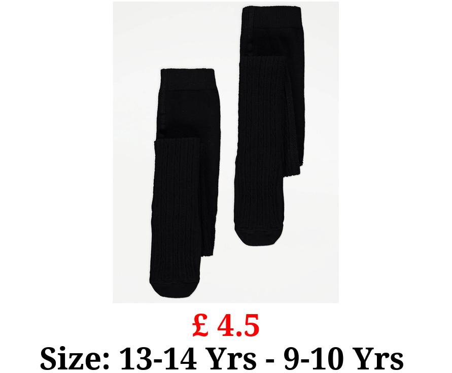 £ 4.5 Black Cable Knit Tights 2 Pack