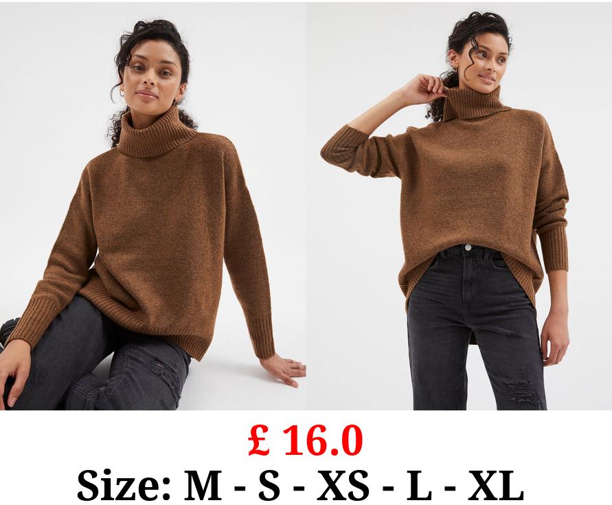 £ 16.0 Tan Slouchy Roll Neck Knitted Jumper
