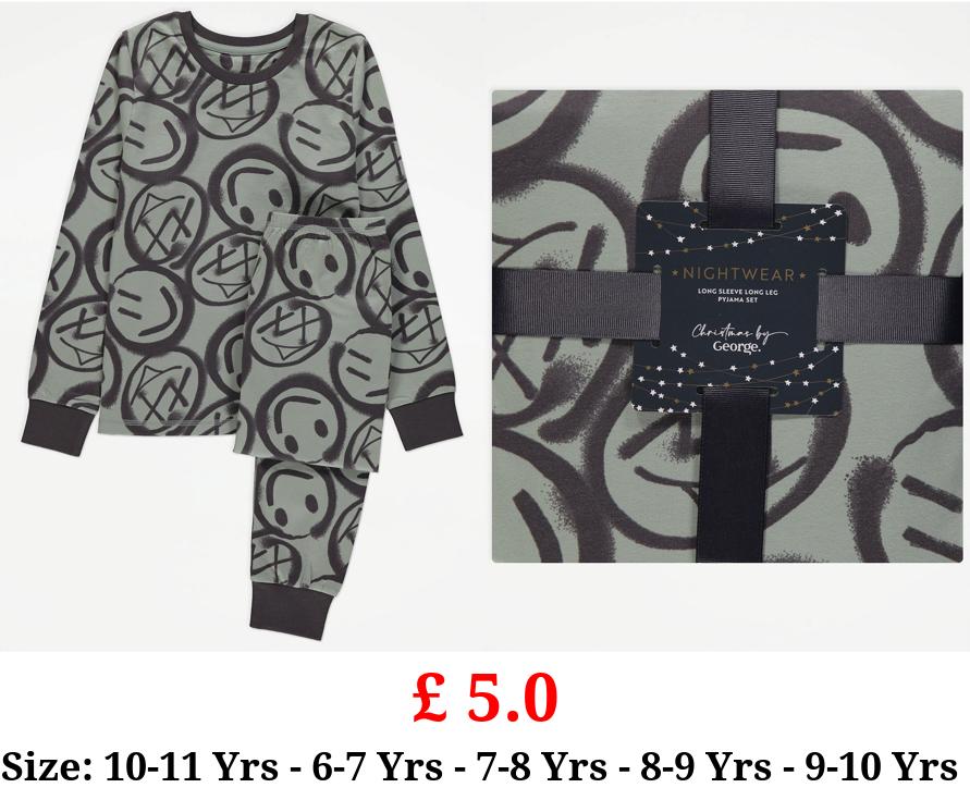 £ 5.0 Sage Green Smiley Face Long Sleeve Pyjamas Gift Set