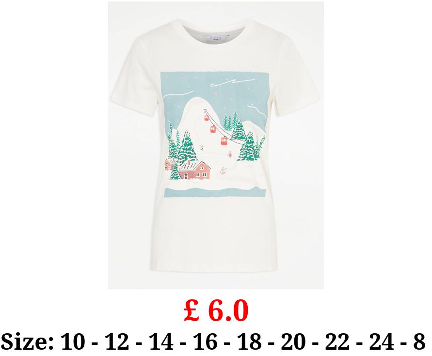 £ 6.0 White Ski Scene Graphic T-Shirt