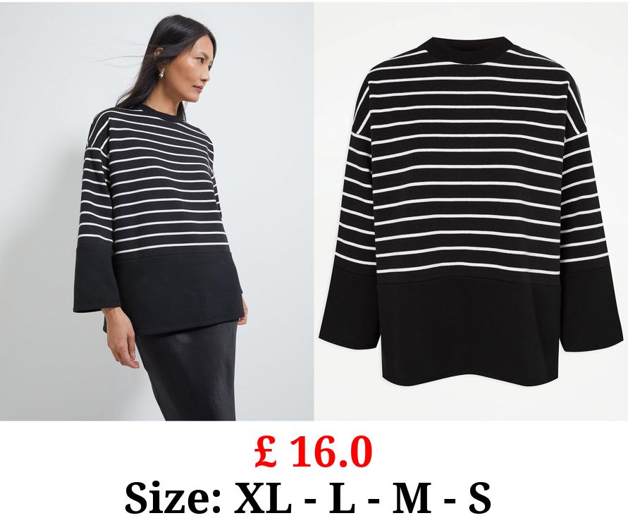 £ 16.0 Black Stripe Crew Neck Sweatshirt