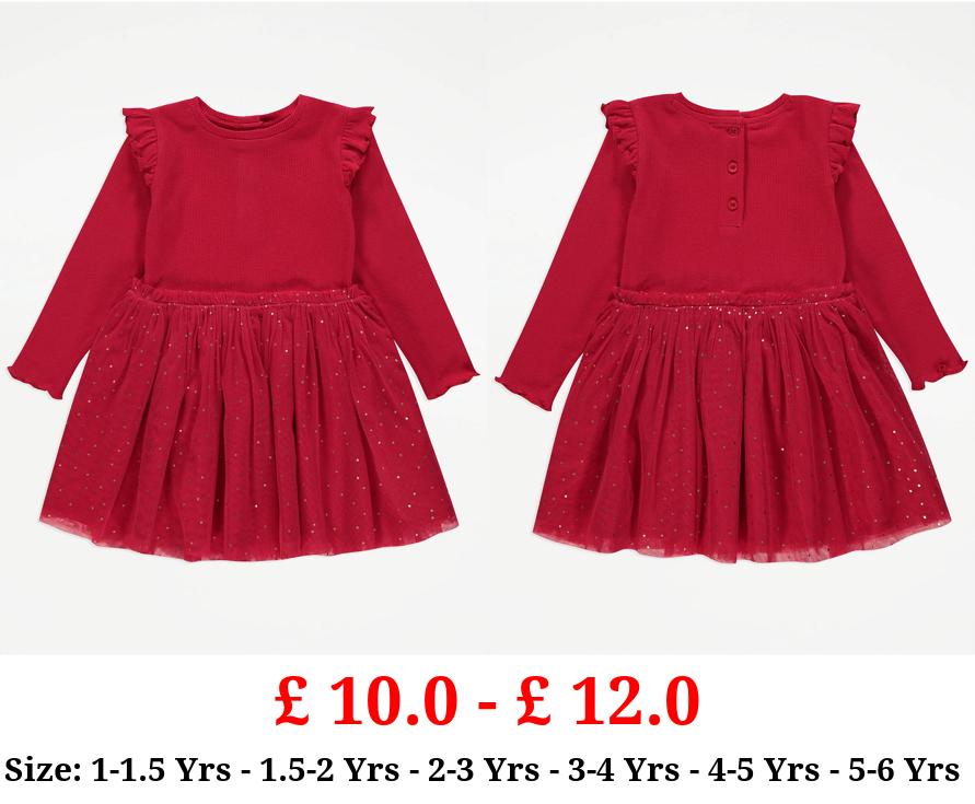 £ 10.0 - £ 12.0 Red 2 in 1 Gold Spot Tutu Party Dress