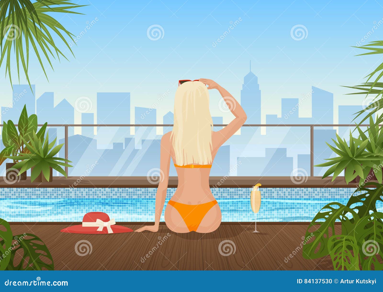nice view of a blonde teaser by the pool