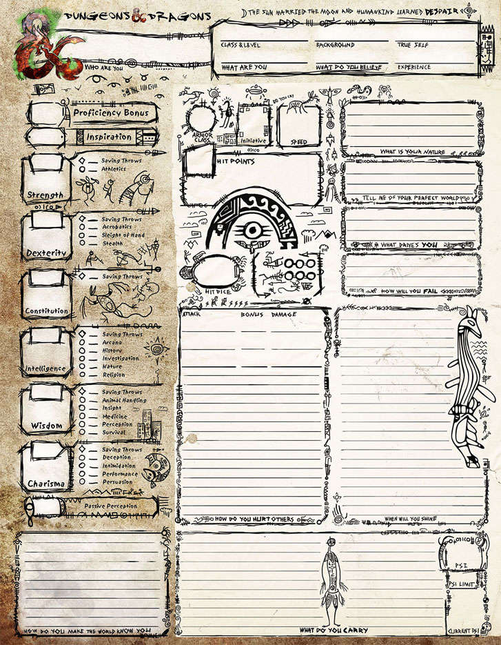 ния лист персонажей