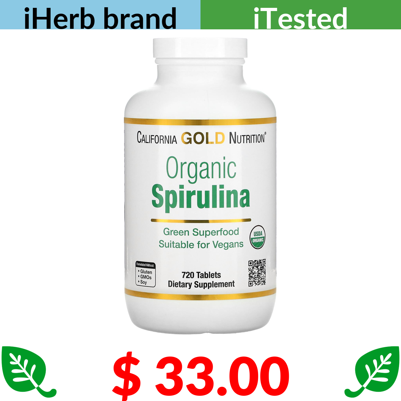 $ 33.00 California Gold Nutrition, Organic Spirulina, 500 mg, 720 Tablets